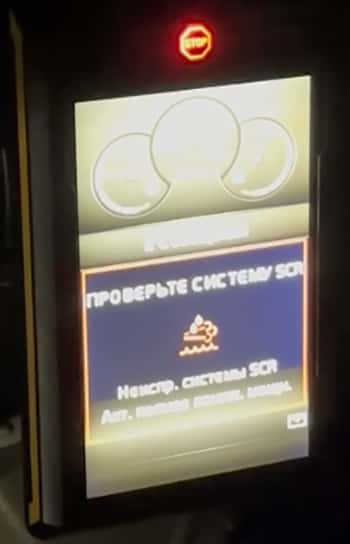 В момент обращения в наш сервис в технике начинались проблемы с системой SCR (AdBlue), которая привела к аварийному режиму с ограничением мощности.